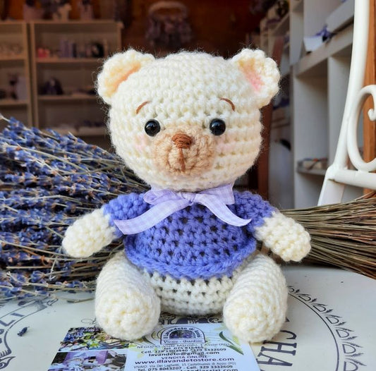 Orso uncinetto. Orso a uncinetto pieno di fiori di lavanda.