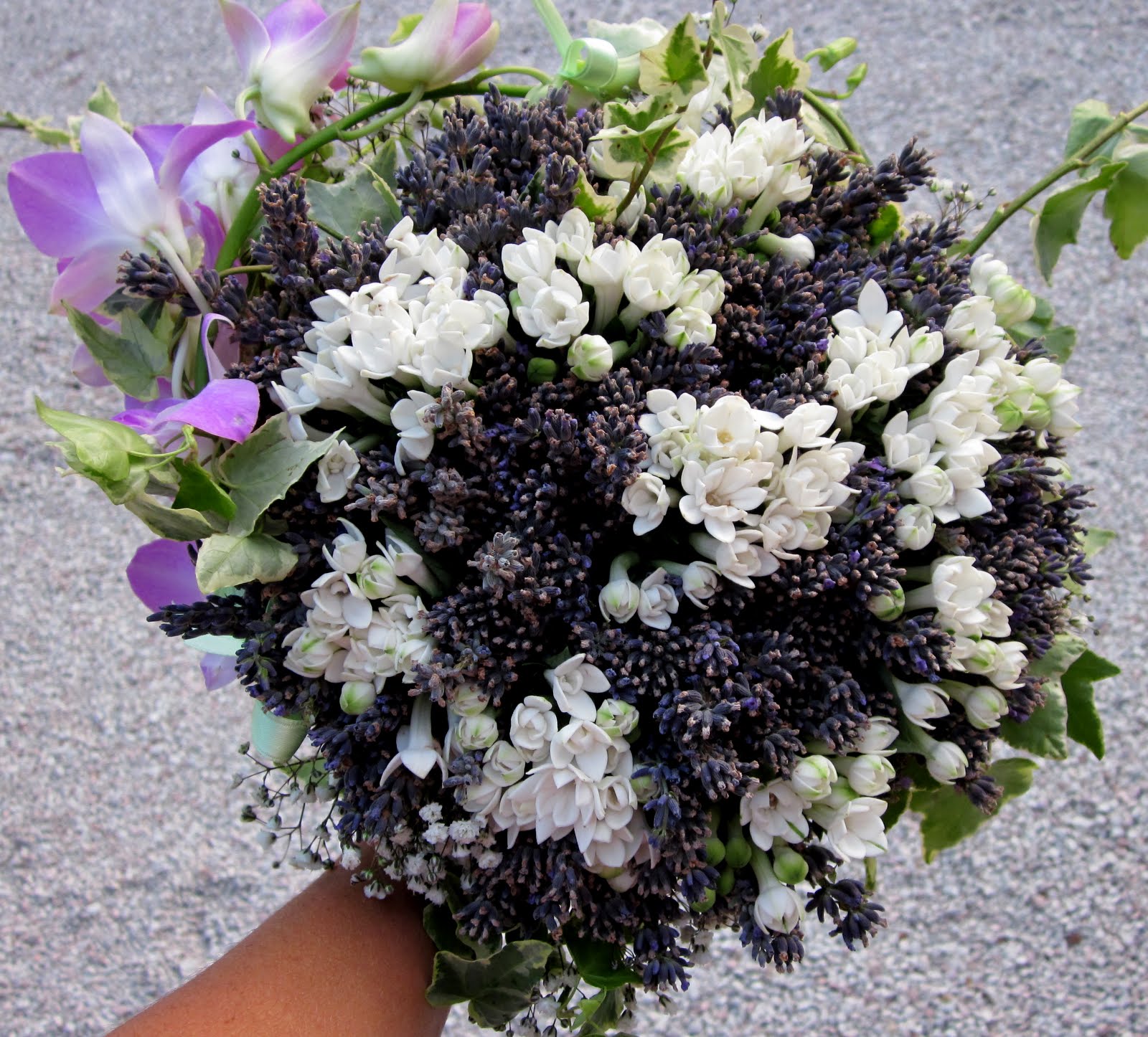 Lavanda fresca blu e lisianthus bianchi. Chiama per info 339 3851750