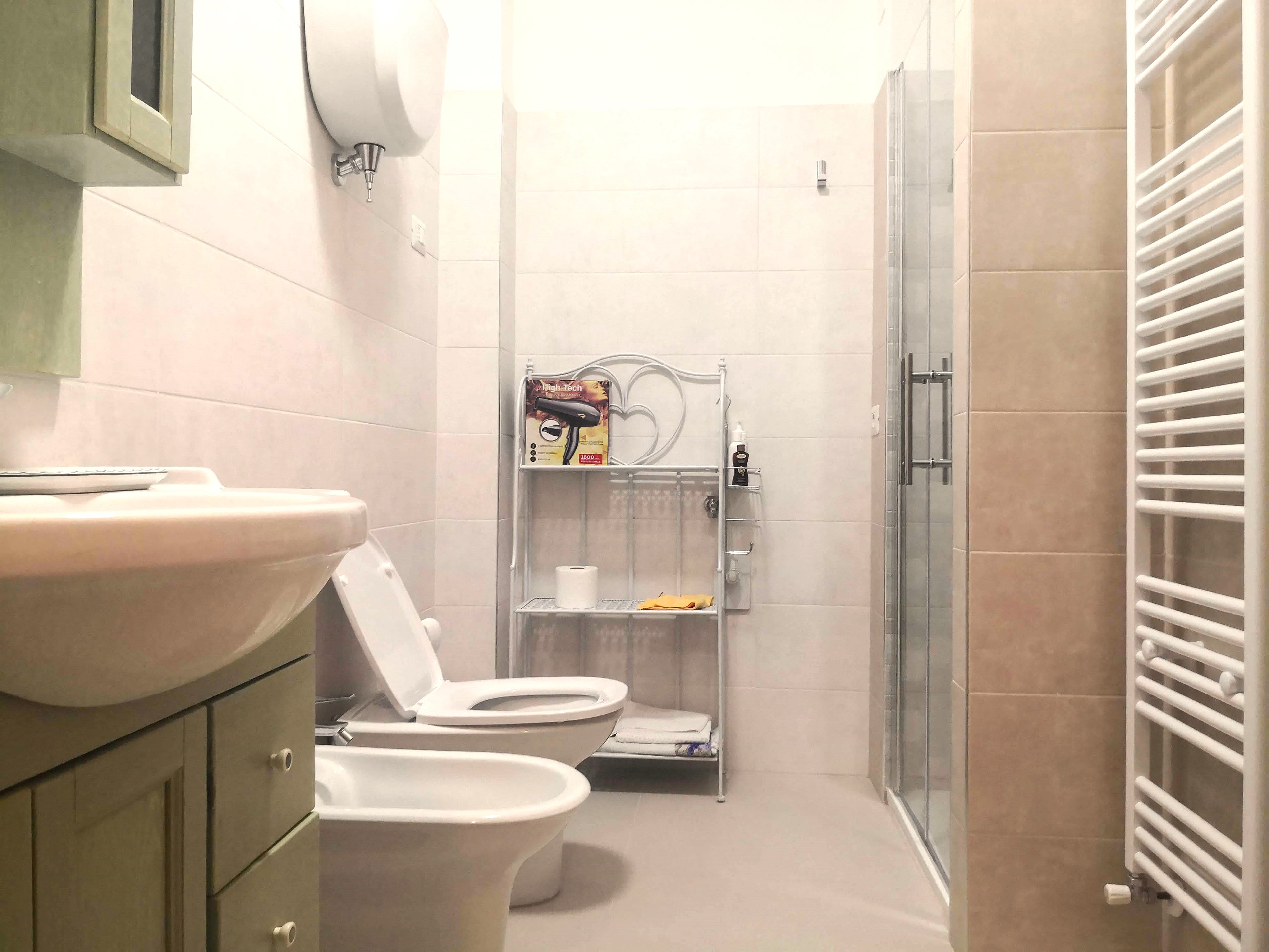 Bagno con doccia, rifatto nel 2023.